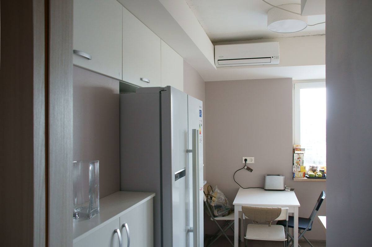 Même dans une très petite pièce, vous pouvez organiser un agencement pratique, efficace et rationnel des segments principaux, en suivant les recommandations mentionnées ci-dessus. Pour les très petites pièces, il est utile d’envisager de déplacer certains systèmes de stockage à l’extérieur - dans l’espace intérieur ou dans le couloir.