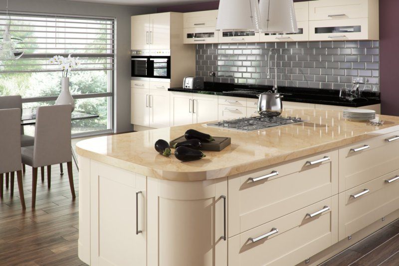 Ce schéma peut être utilisé pour les cuisines dont les dimensions sont supérieures à 15 mètres carrés. m., c'est-à-dire plus que la moyenne. Ceci est généralement une combinaison avec un salon ou une salle à manger.Vous pouvez créer une disposition d'île en combinaison avec tout type décrit ci-dessus. Pour ce faire, vous devez ajouter un îlot de cuisine - une salle à manger, une surface de travail, des systèmes de stockage. En fonction de la superficie de la cuisine, la taille de l'île dépendra également.