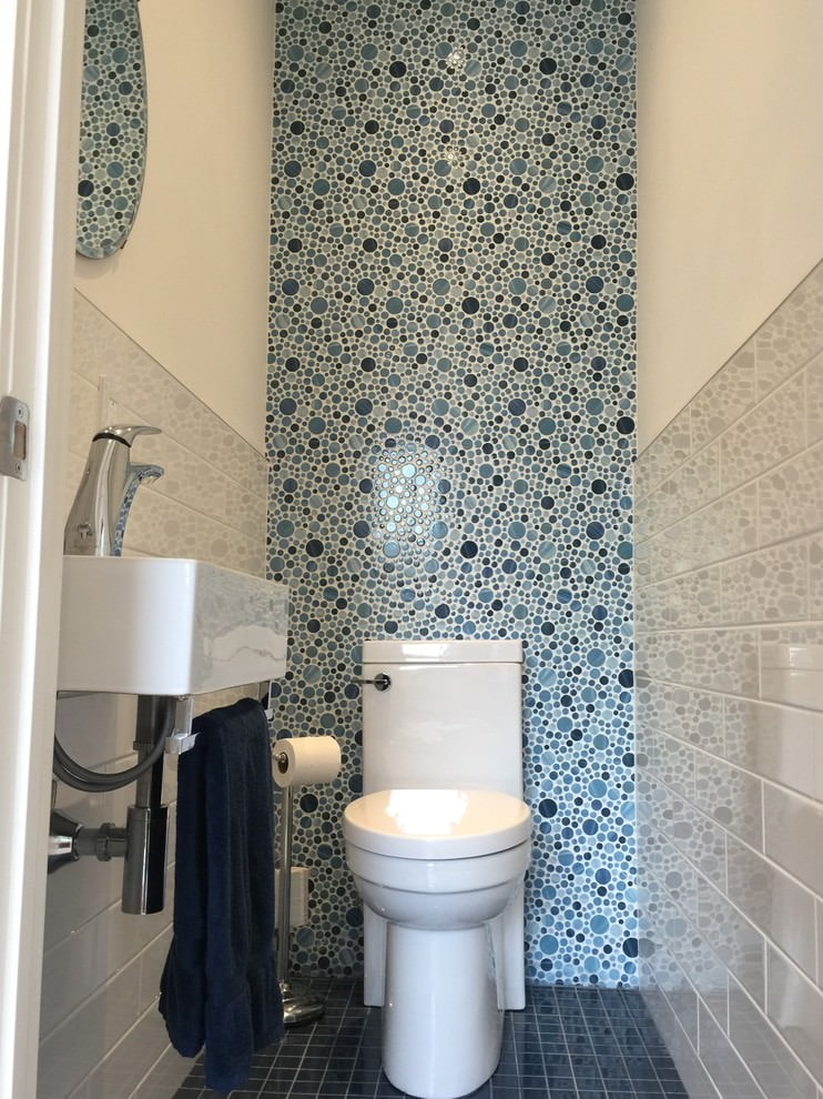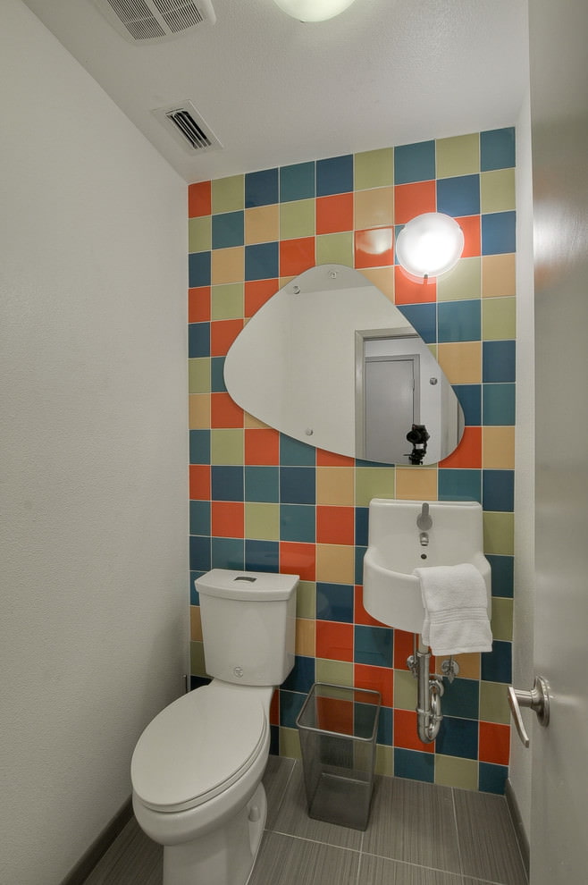 Concevoir une petite toilette avec des carreaux colorés