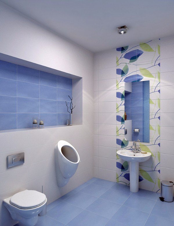 Ce matériau de finition brillant et non-trivial pour le revêtement des toilettes a commencé à être utilisé pendant très longtemps.Grâce à lui, la salle de bain est remplie d'humeur positive. En règle générale, les carreaux colorés servent à mettre en valeur une zone d’accent, le périmètre d’une pièce, la plomberie ou des éléments intérieurs individuels.