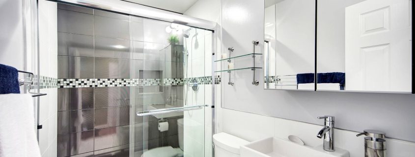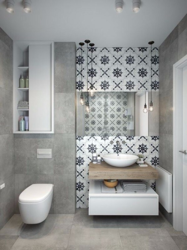 Tuiles combinées dans une petite toilette