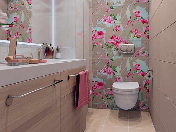 L'utilisation d'un matériau de type patchwork est assez coûteuse. De plus, s'il est utilisé pour décorer toute la pièce, il sera trop coloré. Par conséquent, il est choisi pour la conception de zones individuelles, en particulier celles qui sont les plus polluées ou constamment en contact avec de l’eau. Un tel motif coloré rend la salle de bain amusante et facile.