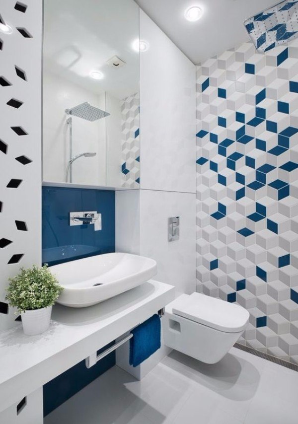 Pour l’intérieur dans un style ultra-moderne, la mosaïque de tons froids peut être combinée avec un sol en marbre et un grand nombre de surfaces de miroirs. Pour créer un environnement futuriste, un plafond miroir, un système d'éclairage intégré et des éviers non triviaux conviennent.