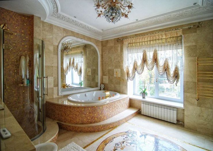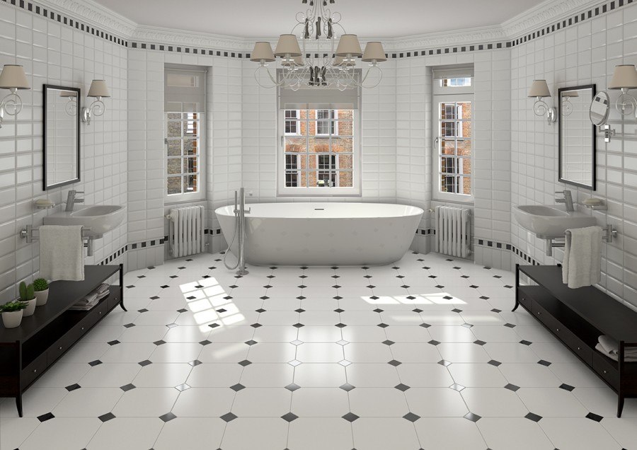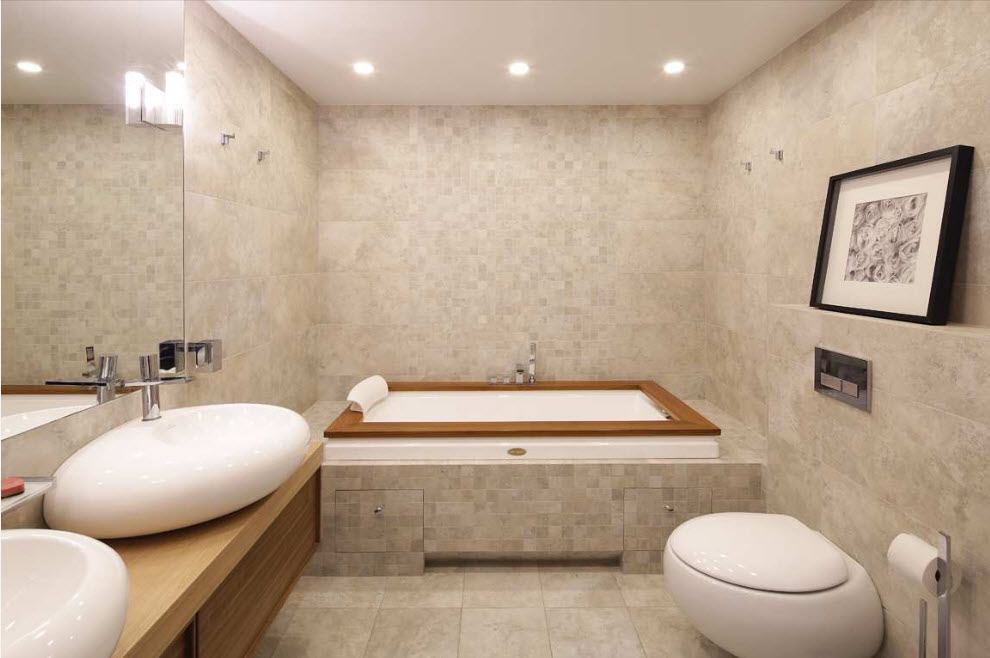 Tous les types de carreaux conviennent à une salle de bain de taille moyenne ou grande. Une dalle trop petite ne convient pas à une petite pièce - elle réduit la pièce, il est donc préférable d’utiliser des tailles grandes et moyennes.
