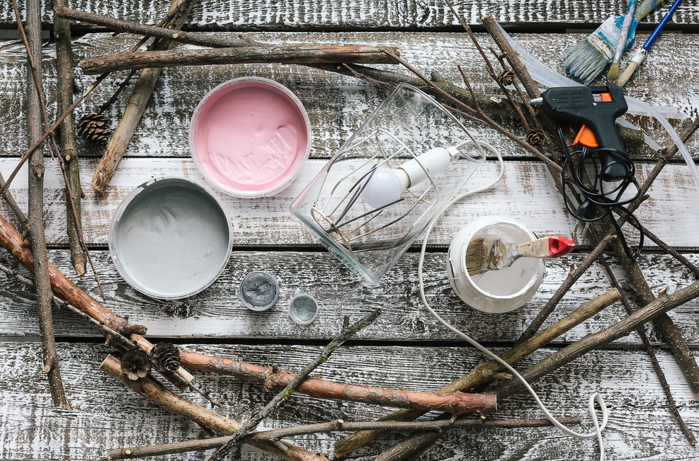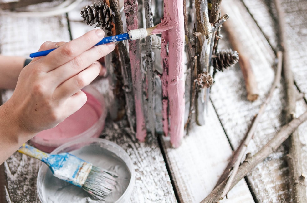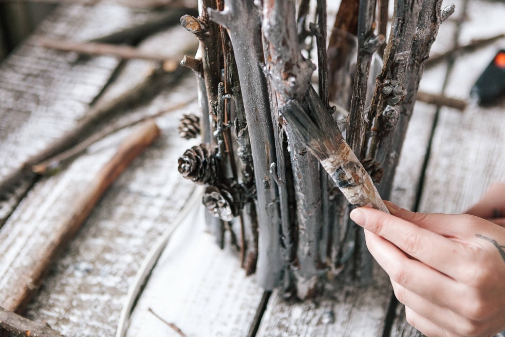 Si vous le souhaitez, vous pouvez également colorier les branches. Dans ce cas, une peinture acrylique blanche est utilisée.