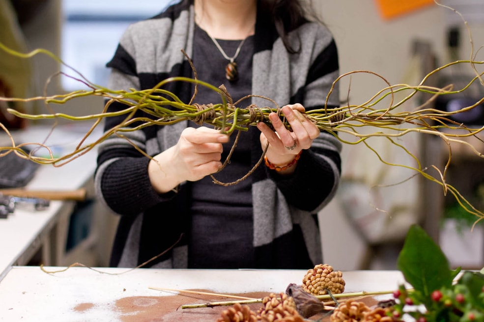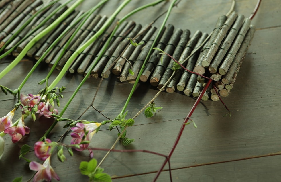 Nous coupons le fil floristique décoratif et enveloppons plusieurs branches avec une couche dense.