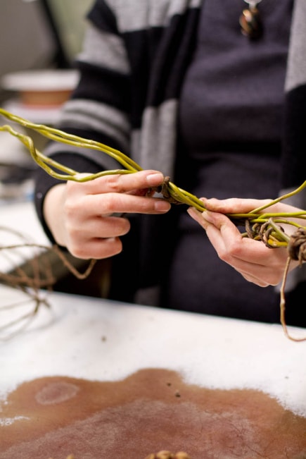 Nous attachons plusieurs branches de millepertuis à la jonction des branches de saule.