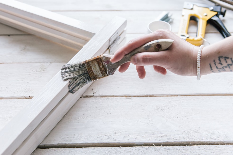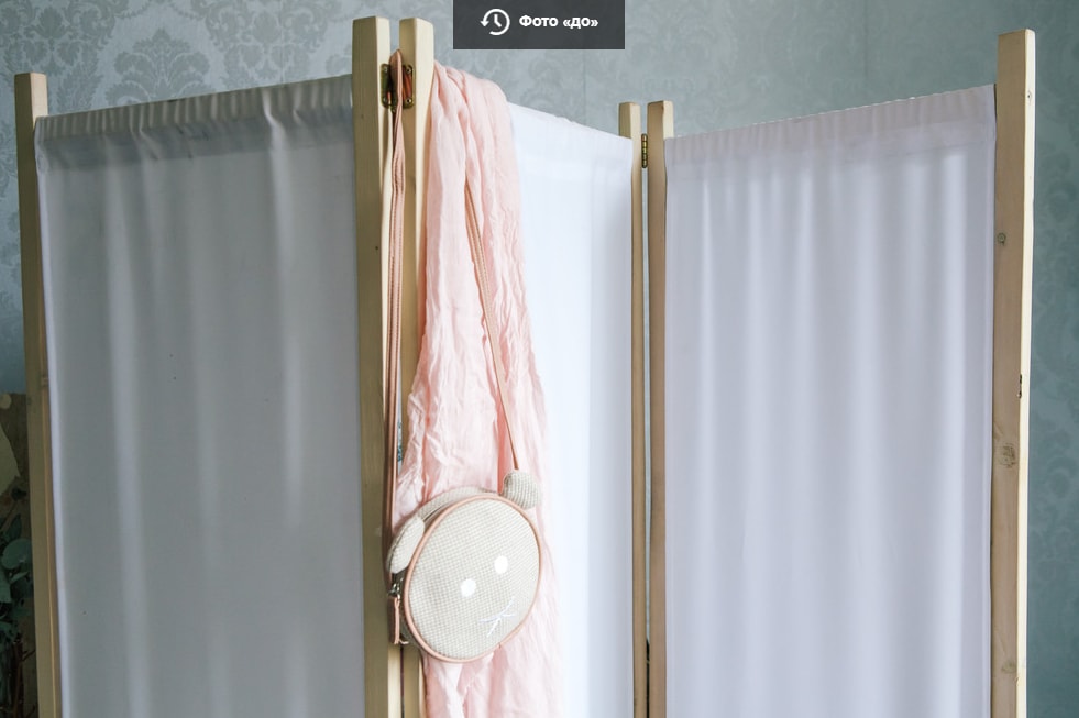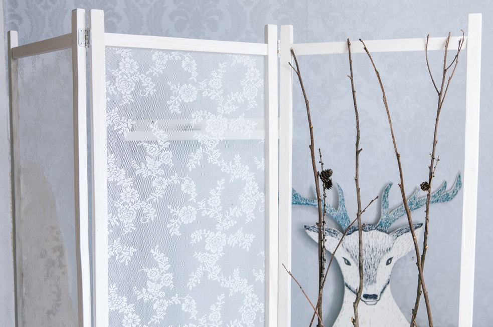 Pour commencer, nous supprimons tout le tissu de l'écran. Nous recouvrons les éléments en bois avec de la peinture acrylique en deux couches. Laissez sécher complètement.