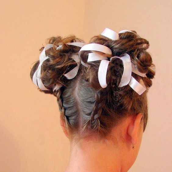 Les propriétaires de cheveux longs sont particulièrement chanceux. En effet, grâce à cela, vous pouvez créer un grand nombre de coiffures très différentes. Ceux qui ont les cheveux courts ne doivent pas être bouleversés, car si vous le souhaitez, vous pouvez utiliser de nombreuses autres coiffures non moins attrayantes. Bien entendu, les mères aideront les très jeunes filles dans ce processus. À partir de 10-13 ans, vous pouvez essayer de faire quelque chose comme ça vous-même.
