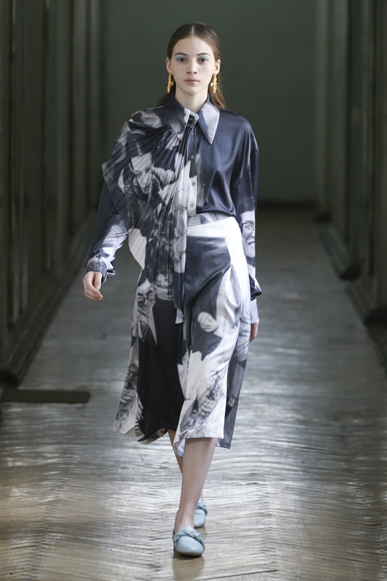 Certaines femmes n'aiment pas les vêtements monochromes et choisissent donc une robe pour acheter une robe grise avec un imprimé. Bien sûr, les modèles gris de robes décorées avec des ornements intéressants, des dessins graphiques ou une cage ont l’air très élégant et original. L'imprimé compense la neutralité de la couleur grise et rend la tenue spectaculaire.