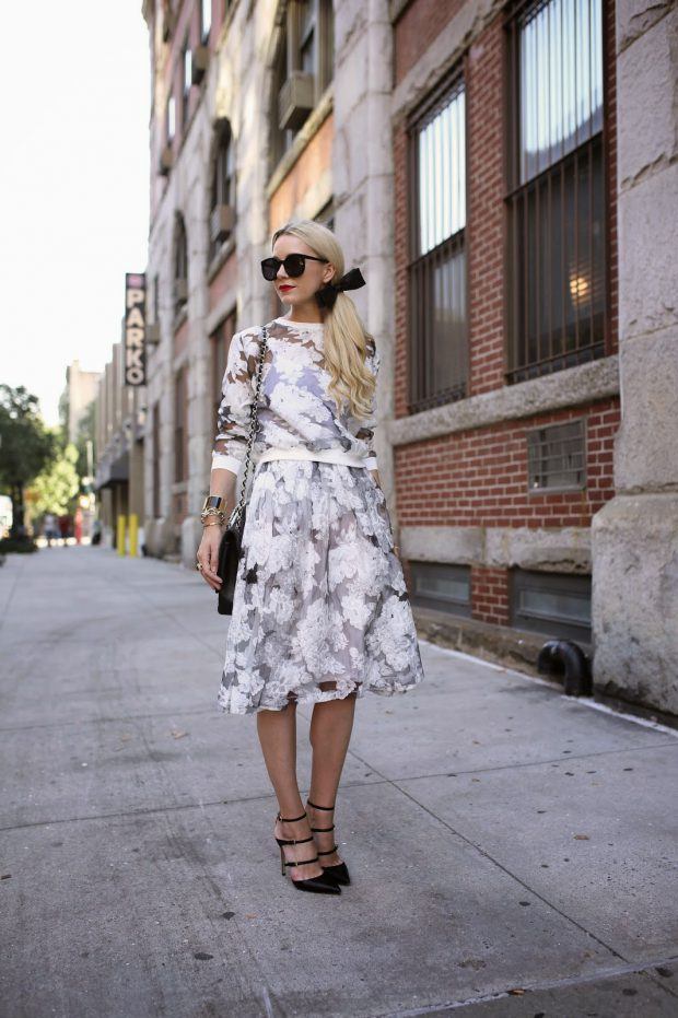 Auparavant, on pensait que la longueur du midi pouvait être combinée exclusivement avec des sandales à talon aiguille ou des sandales. Heureusement, chaque année, les stylistes élargissent le visage des chaussures autorisées, de sorte que vous pouvez maintenant voir des images plus audacieuses et parfois extravagantes. Néanmoins, les chaussures et les sandales romantiques restent toujours à la mode. Elles sont idéales pour créer des images modestes mais féminines.