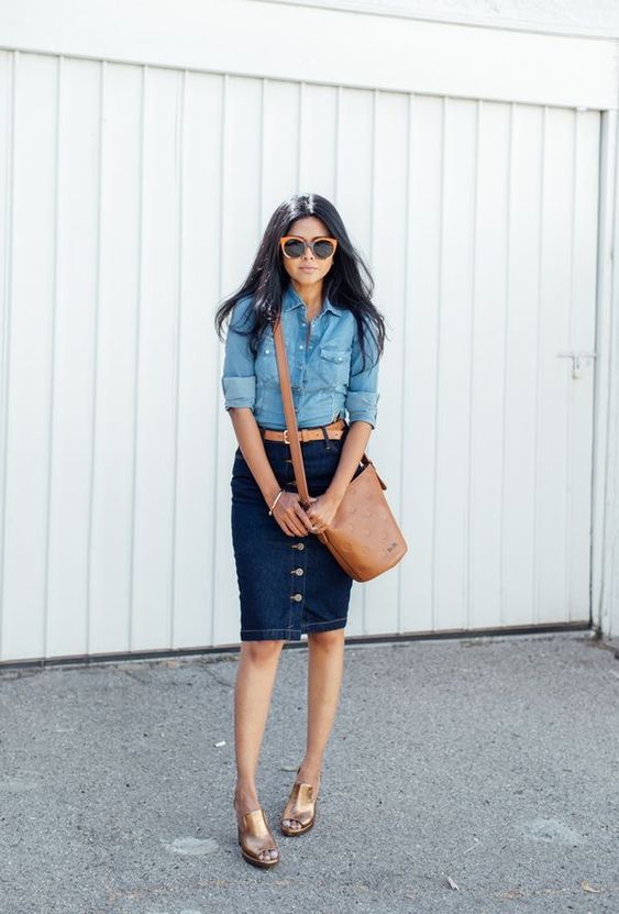 Pour les amateurs de tenues plus féminines, nous suggérons d'associer une jupe en jean avec un chemisier ou un t-shirt léger et des chaussures à talons hauts. Il peut s’agir de bateaux classiques, de sandales à lacets ou même de mules, qui sont maintenant au sommet de leur popularité.