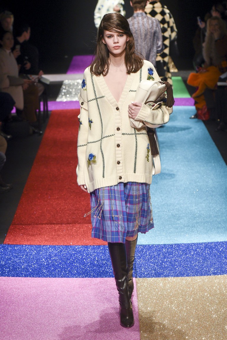 La cellule fonctionne très efficacement sur les femmes aux hanches minces. Les jolies femmes élancées ne craignent pas du tout de mettre une jupe à carreaux pour le travail, même dans des cellules aux couleurs vives et très dangereuses pour l'image d'une entreprise. Des intersections de rayures épaisses sur une jupe se trouvent très souvent aux endroits les plus spécifiques, au milieu d'une figure féminine. Cela élargit visuellement les lignes les plus larges du corps. La cellule est très attrayante pour les femmes habillées dans un style jeune et preppy. Si vous n’avez pas peur d’agrandir visuellement la partie inférieure de la silhouette, choisissez facilement une jupe en tissu de la largeur, de la hauteur et de la couleur de la cage. Il est préférable de porter une jupe cage à sommet monophonique. Toutefois, sur les passerelles 201, les concepteurs suggèrent d’utiliser ces jupes dans des images multicouches et dans un style oversize.