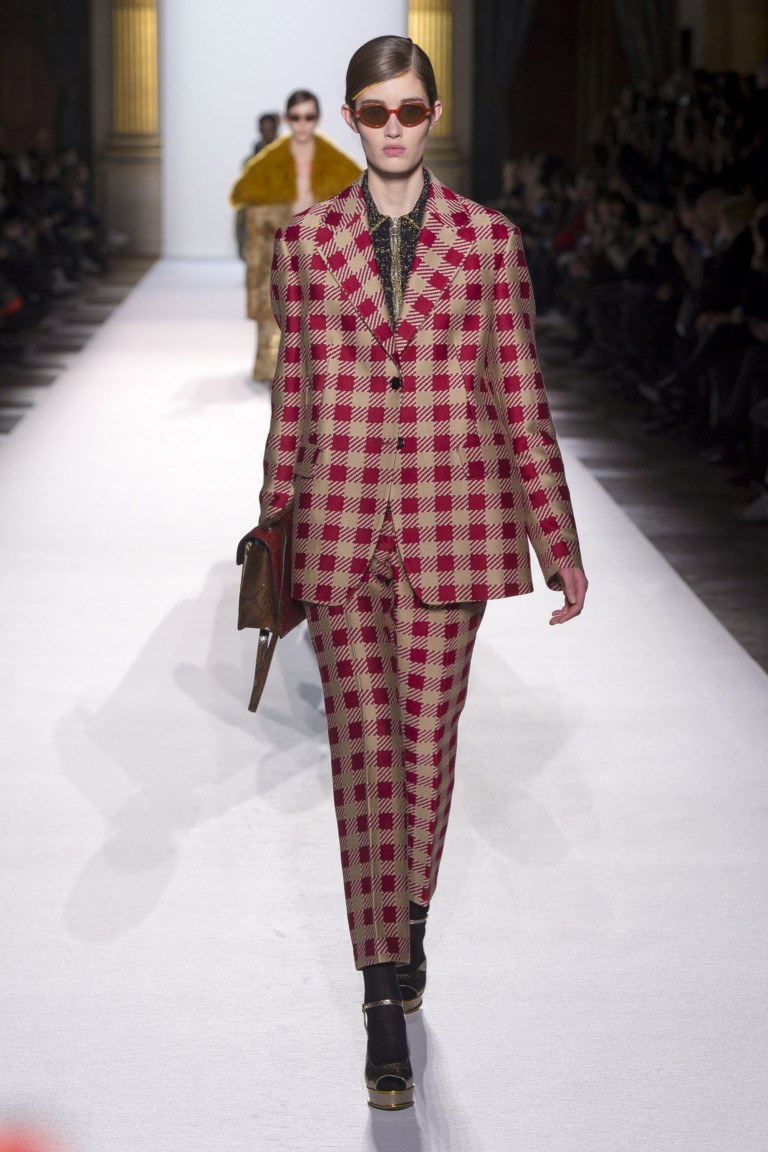 Les femmes plus âgées choisissent une cage incarnée dans un costume. Le costume peut être avec une jupe ou, ce qui est plus commun dans nos régions climatiques, avec un pantalon. Très souvent, les designers réalisent des costumes dans une cage européenne calme, pas trop large et pas particulièrement exigeante. Il est très facile de choisir des accessoires pour ce type de tissu à carreaux. Il suffit de comparer la teinte des accessoires de mode et la couleur des fils à carreaux. Une cellule neutre est autorisée pour les femmes de tout physique. Un costume à carreaux d'une pièce de style sportif conviendra aux jeunes filles car ces options se combinent mieux avec des baskets. Si la saturation des couleurs de la cellule est très perceptible, alors le costume sera trop visible, et choisissez donc correctement la couleur à damier afin de ne pas souffrir d'un changement physique grave.
