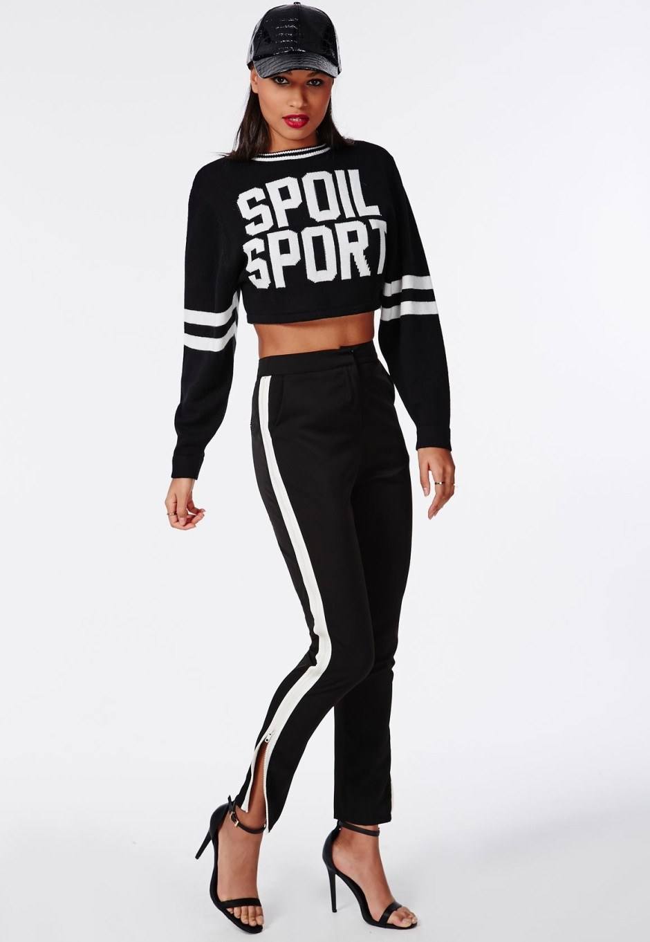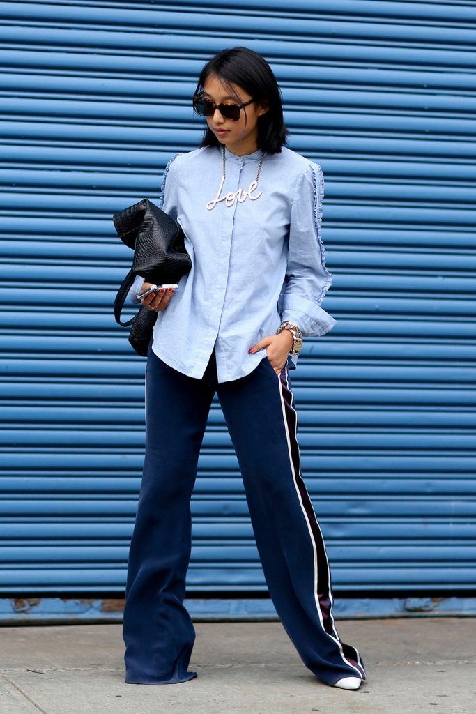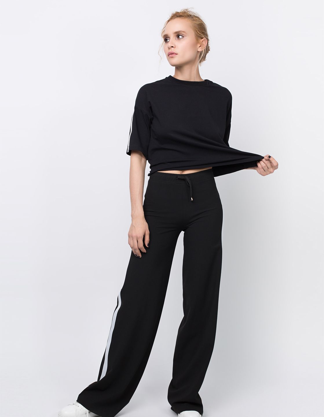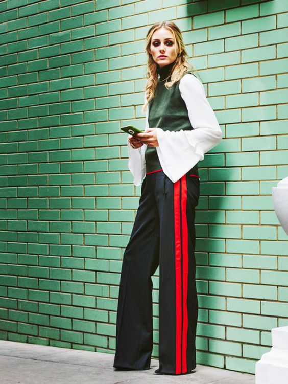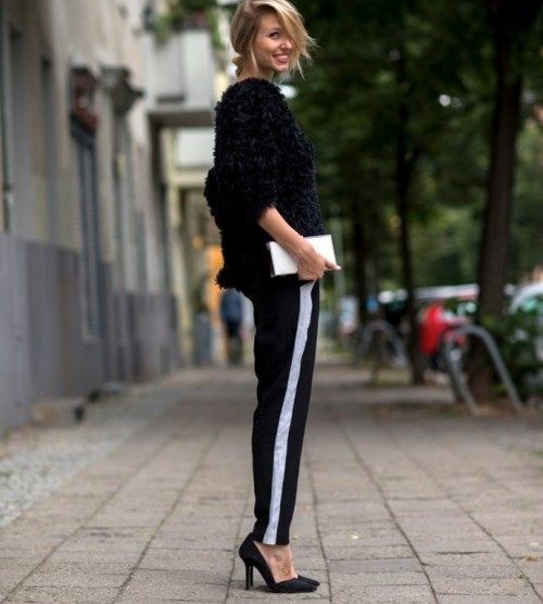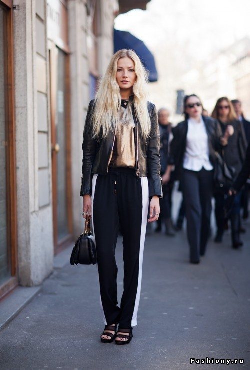 Le thème du pantalon à rayures pour femmes est non seulement sécuritaire, mais également très intéressant. Pour beaucoup de femmes, un pantalon à rayures est une option qui ressemble incroyablement à un pantalon de survêtement. Certaines regardent des défilés de grandes marques et réfléchissent aux raisons pour lesquelles les femmes sont libérées en formation. Mais c’est à la mode! Certains designers proposent le design original de tels pantalons et cousent des matières brillantes, de beaux tissus et même des pierres Swarovski à la place des rayures ordinaires.