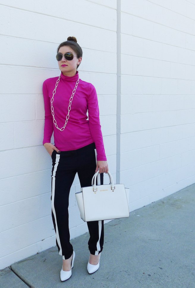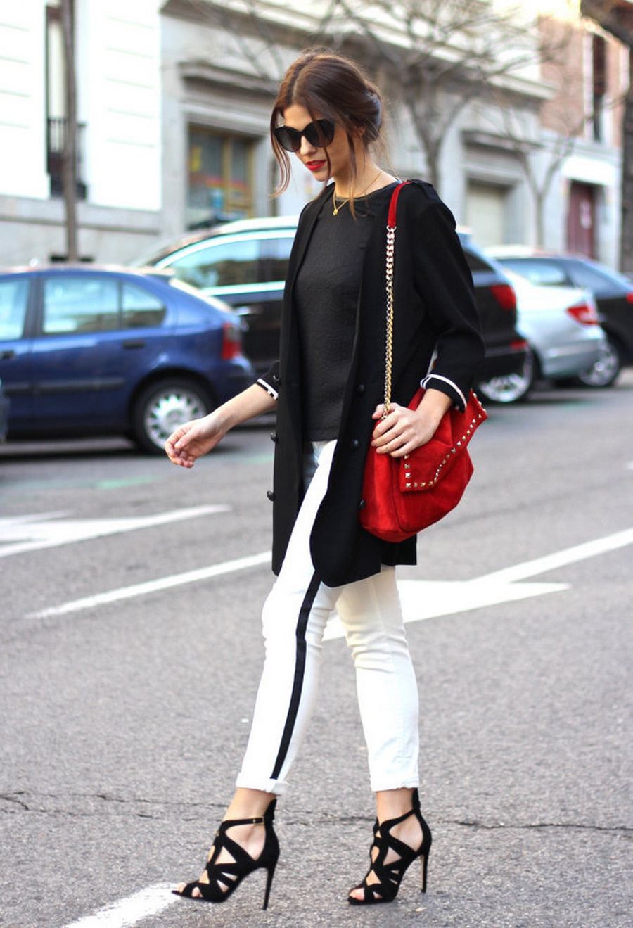 Le sujet des rayures blanches sur les pantalons noirs pour femmes a été révélé pendant plus d'une saison, mais en 2026, il n'était clairement pas encore fatigué des fashionistas. Sous la version noire et blanche du pantalon à rayures, le même sac à main rayé noir et blanc est parfait. De nombreux créateurs se tournent vers une large bande verticale et l’utilisent donc assez souvent dans leurs collections de mode. Les stylistes recommandent de combiner un pantalon noir à rayures blanches avec un sac à main à rayures, qui couvre deux tendances de la mode à la fois: une bande verticale noire et blanche et de larges rayures contrastantes. En outre, il est recommandé de mettre en valeur l'image sous la forme d'un manteau ou d'un cardigan brillant, car la différence de noir et blanc actif est trop sévère et la couleur vive équilibre l'équilibre de l'image. De telles images élégantes ne semblent pas pathétiques ni prétentieuses.