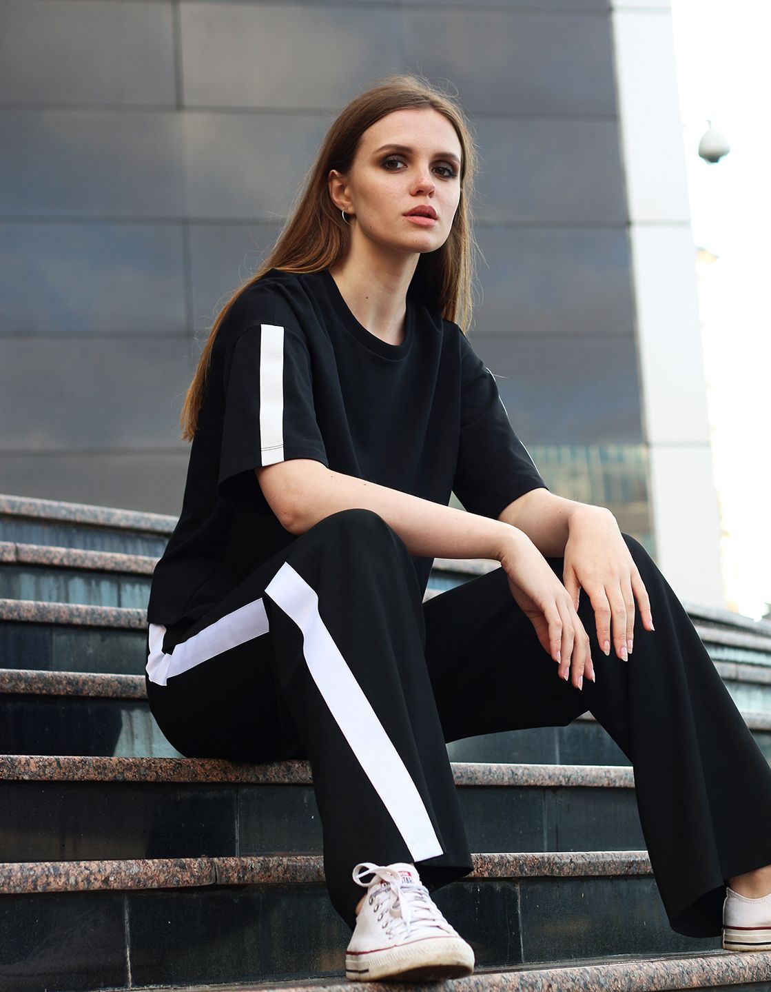 Les versions les plus difficiles des bandes aujourd'hui sont des pantalons au son sportif. Habituellement, ces pantalons ont une combinaison de couleurs très sportive. Mais ne confondez pas le pantalon avec des rayures de style sportif avec un pantalon de survêtement à rayures. Ce sont absolument deux choses différentes. Les pantalons pour femmes à rayures de style sportif sont privés de problèmes en dehors du terrain de sport. Dans ces versions modernes, les concepteurs n’ont pas utilisé de logos, d’éléments décoratifs susceptibles de mettre l’accent sur la vitesse. Mais elles ont une géométrie de podium à laquelle beaucoup de femmes sont habituées, et non la géométrie d’un vêtement de sport. Les femmes qui choisiront un pantalon à rayures avec des notes de sportivité en 2026 auront l’air élégant, à la mode, moderne et cohérent avec les tendances de la mode en 2026.