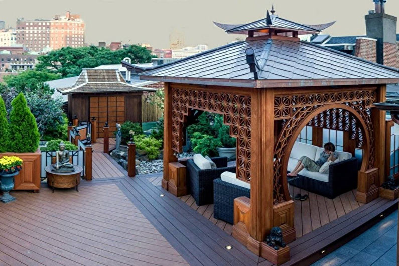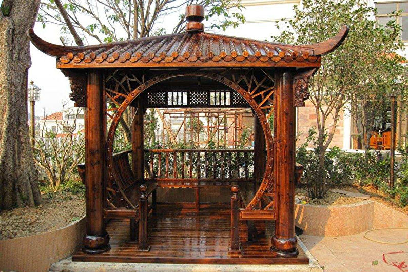 Le gazebo de style japonais est parfaitement combiné à tous les styles laconiques et modernes, en particulier au minimalisme venu du pays du soleil levant.