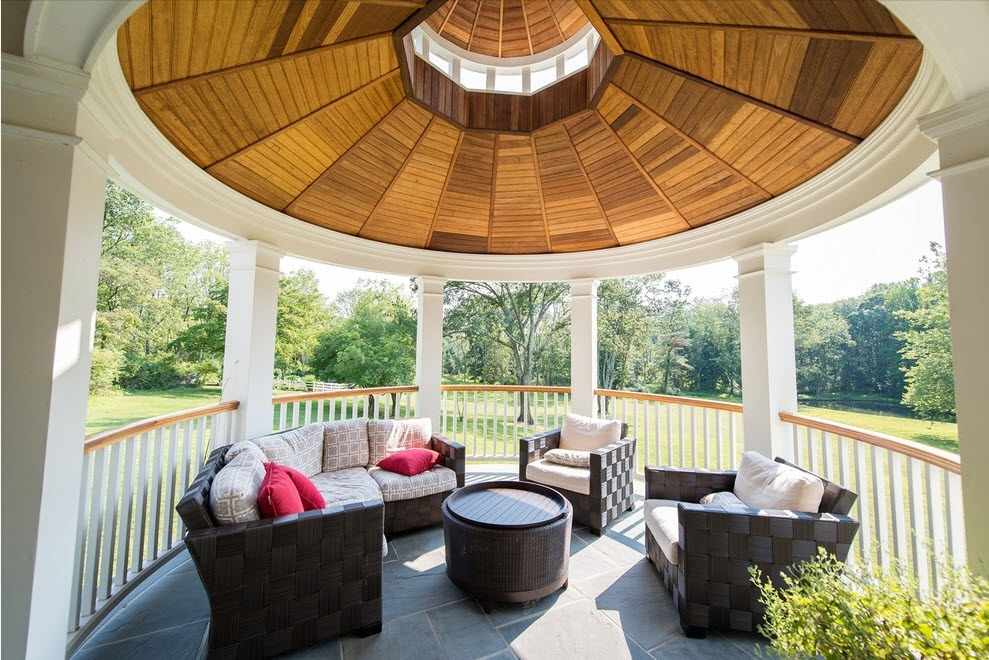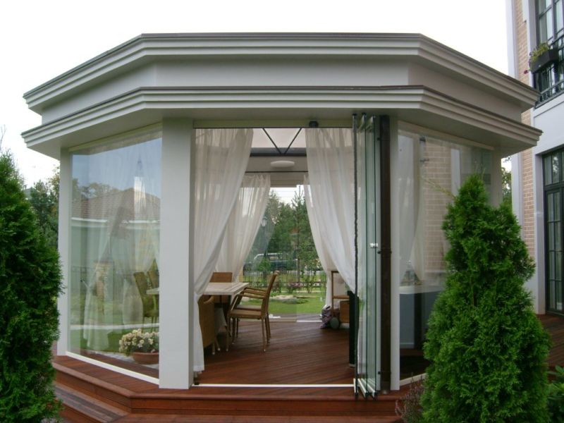 Cette option est la plus courante et la plus appréciée des concepteurs: d’un kiosque fermé à un simple auvent, du classique au minimalisme. Mais la description doit commencer par les spécifications techniques.