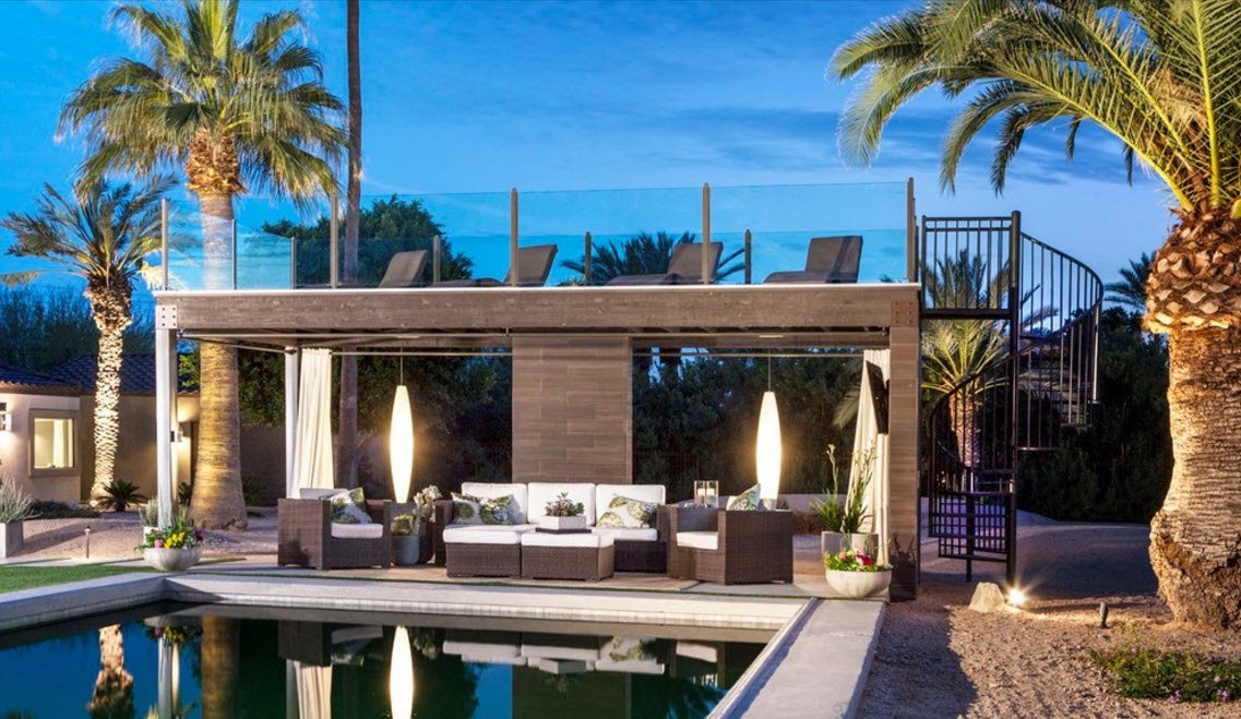 Le gazebo de style japonais est parfaitement combiné à tous les styles laconiques et modernes, en particulier au minimalisme venu du pays du soleil levant.