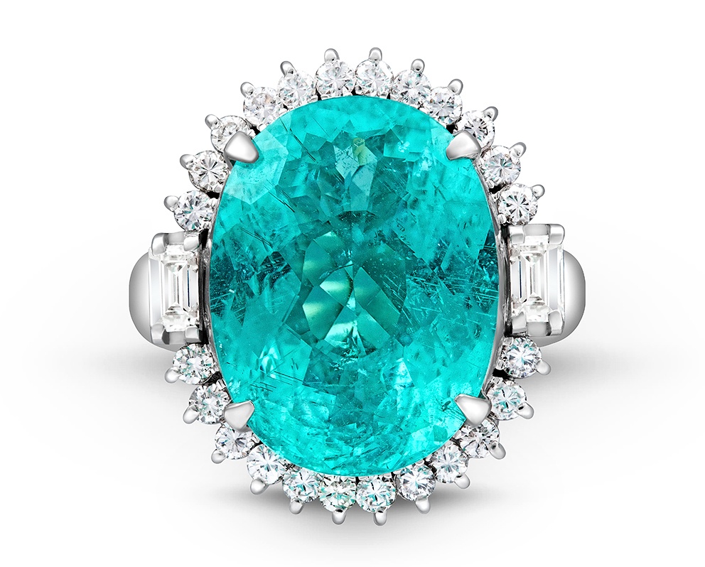 Cette pierre la plus chère ne se trouvait qu'au Brésil. La gemme a une teinte turquoise et au crépuscule - une lueur de néon. Aucune pierre n'a plus de telles propriétés. Il n'est pas possible de photographier cette lueur. À ce jour, les tourmalines de paraiba se trouvent à Madagascar, en Afrique. Leur coût est bien inférieur à celui des brésiliens.