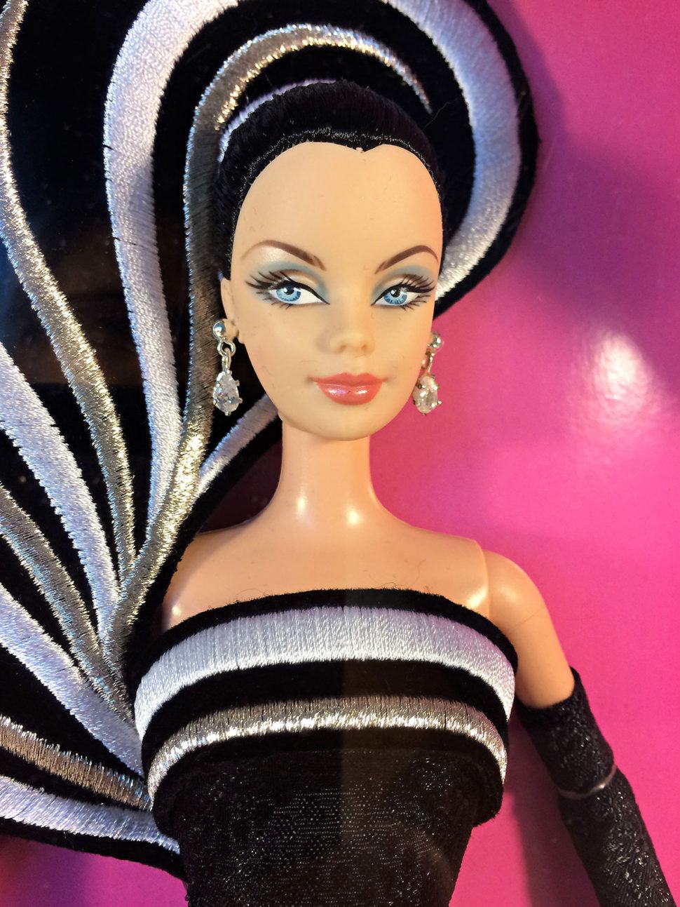 «Barbie No. 1» est la première poupée au monde vêtue d'un maillot de bain avec une couleur zébrée imprimée. La poupée porte de belles boucles d'oreilles rondes. Le coût de la poupée aujourd'hui est de 8 000 $.