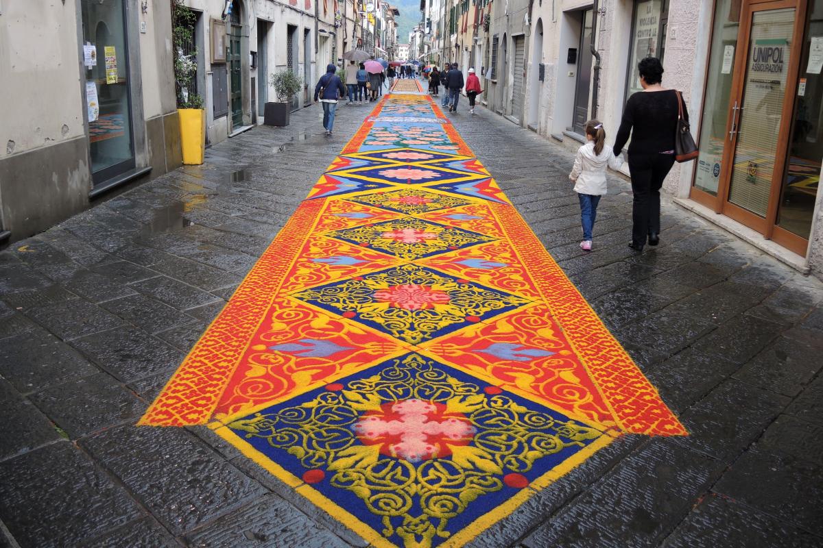 Tous ceux qui visitent les îles Canaries doivent voir la rue miracle - La rue des tapis dans le village de La Orotava. Les maisons qui ont été construites aux 18-19 siècles décorent cette rue. Mais la décoration la plus importante est un décor de tapis fait de sable volcanique. Les compositions de tapis ont l'air très coloré et réaliste.