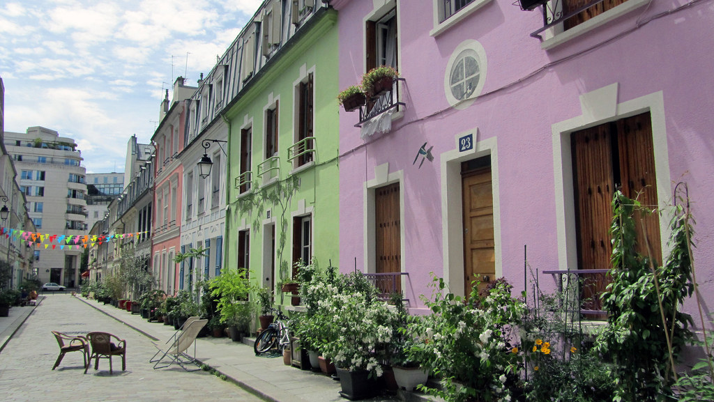 France Paris Lorsque vous arrivez dans cette rue propre, vous vous sentez à l'aise chez vous. Cela est probablement dû au fait que la rue est bordée de fleurs en pots et peut-être de maisons peintes de couleurs différentes, sur lesquelles sont représentées des images de plantes et d'animaux.