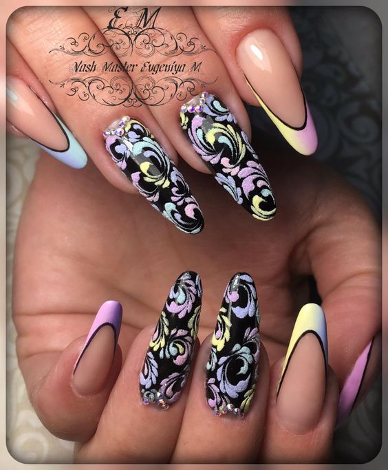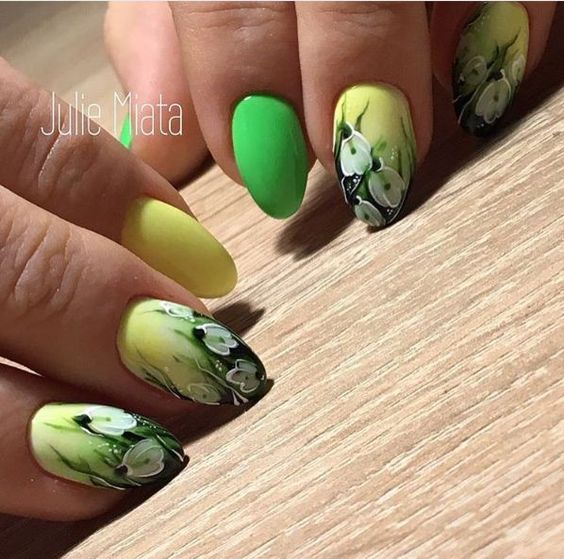 Le printemps, c'est d'abord la tendresse, la douceur et la romance. C'est la période même de l'année où tout fleurit et sent bon, non seulement la nature révèle sa beauté, mais vous fleurissez comme une rose. Il n'y a rien de plus intéressant et attrayant, comme des nuances délicates débordant doucement les unes dans les autres. Inutile de réinventer la roue et de chercher comment créer un tel effet, cela avait été fait pour nous il y a longtemps et l'a présenté dans la technique de manucure populaire - la graduation. La palette de couleurs doit être composée de nuances naturelles de jaune: jaune, pêche, bleu, gris, pistache, vert clair et rose.Une telle technique de manucure à la mode est parfaite pour une femme d'affaires occupée et une jeune fille en fleurs insouciante. La chose la plus importante est de choisir les bonnes nuances pour qu'il y ait une harmonie entre elles.