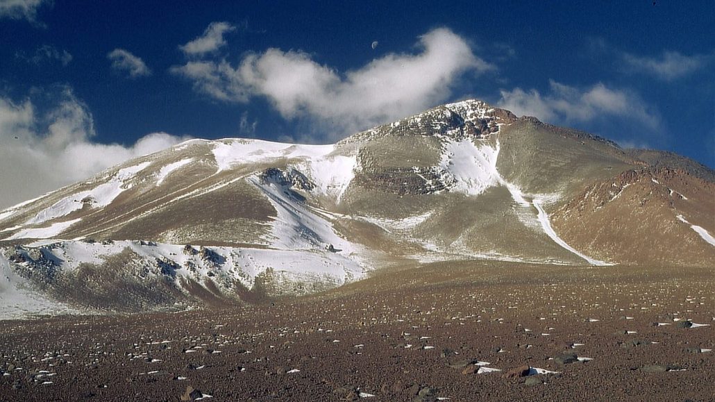 Le Ljulyayljako en activité figure au premier rang des énormes volcans. Il est situé à la frontière du Chili et de l’Argentine et mesure une hauteur de 6 739 mètres.
