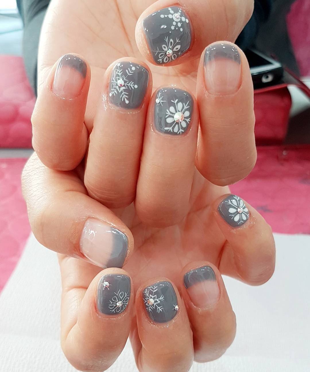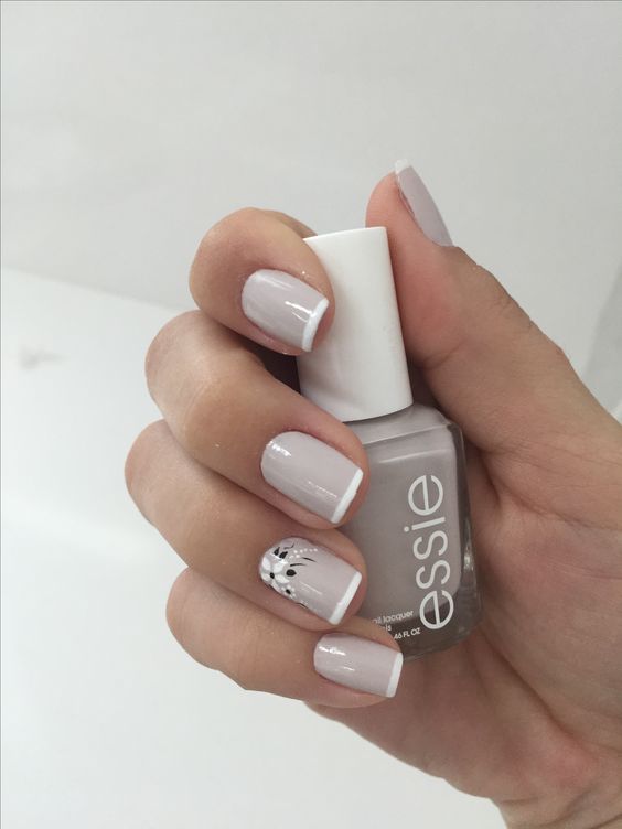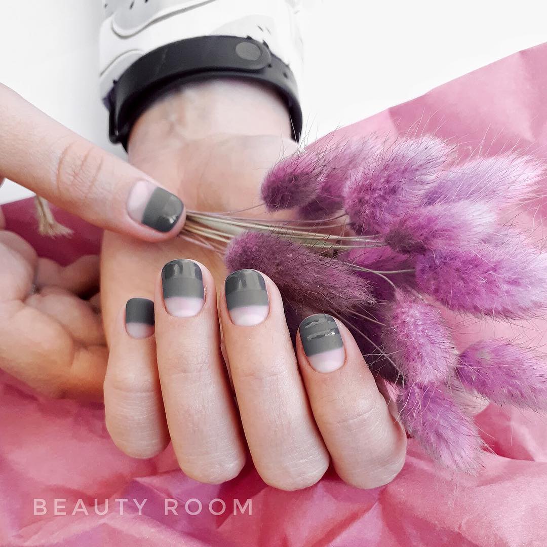 French dans une teinte grise est superbe, même sur des ongles courts. Il est capable de donner une certaine gentillesse aux mains féminines. De plus, cette option de conception est idéale pour toutes les occasions. Toujours sur le ton gris du revêtement de laque, non seulement les strass et les paillettes sont parfaitement combinés, mais également des peintures sous forme de fleurs et de monogrammes. Même les ongles courts peuvent être transformés avec le bon choix de couleur grise et son décor.