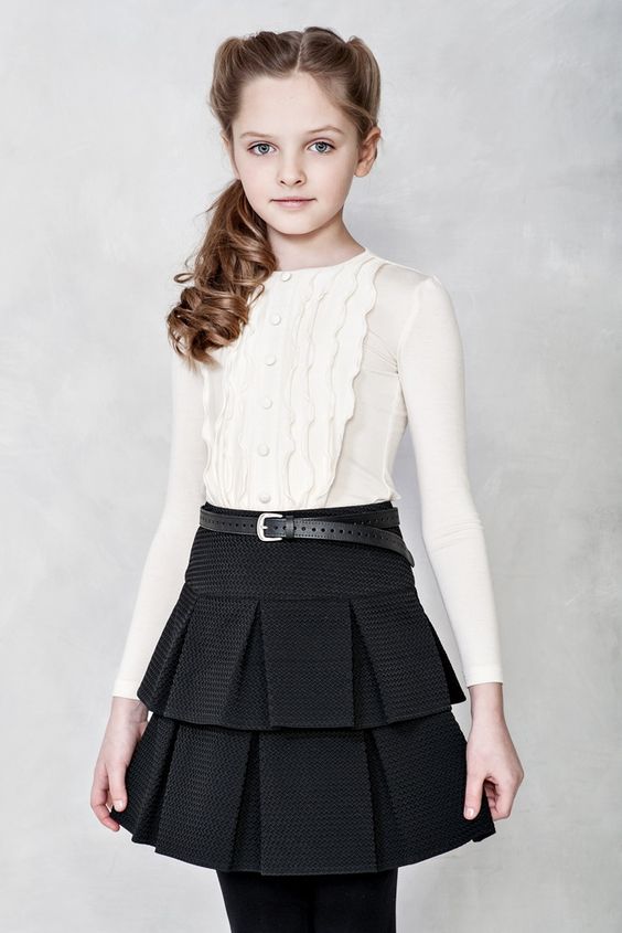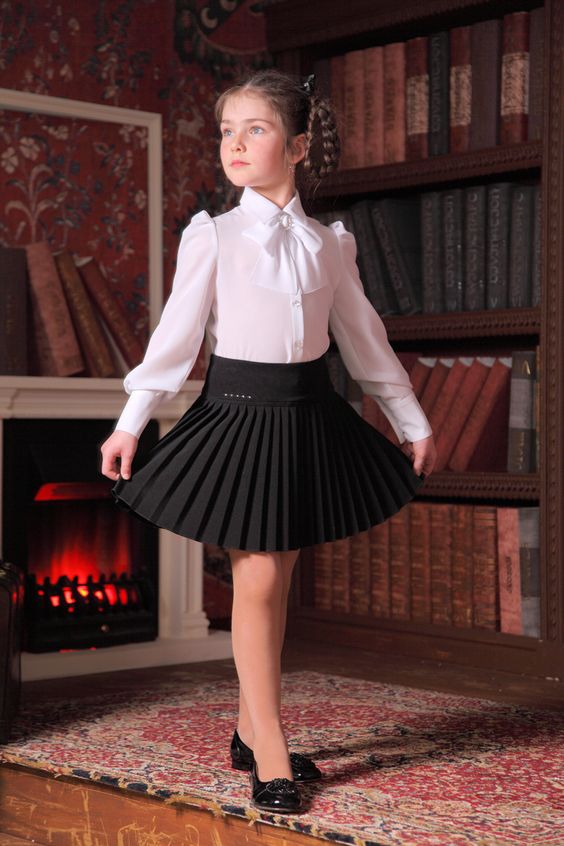 Il vaut également la peine de regarder les chemisiers modernes. Par exemple, les produits avec un décor supplémentaire ont fière allure, même sur une première niveleuse. Par conséquent, les chemisiers à volants, à volants et à cols inhabituels sont également indispensables tout au long de l'année scolaire.