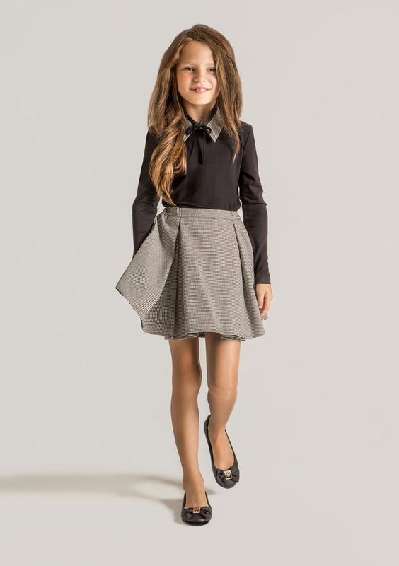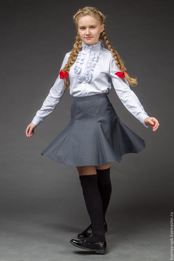Parmi les styles les plus pertinents de jupes sont le trapèze, évasé et le soleil.Ce sont ces options qui constituent une base idéale pour les uniformes scolaires.
