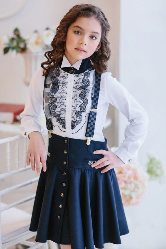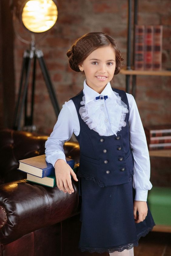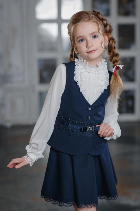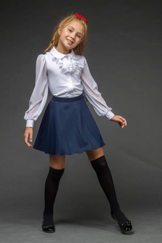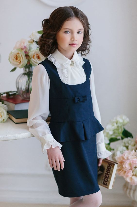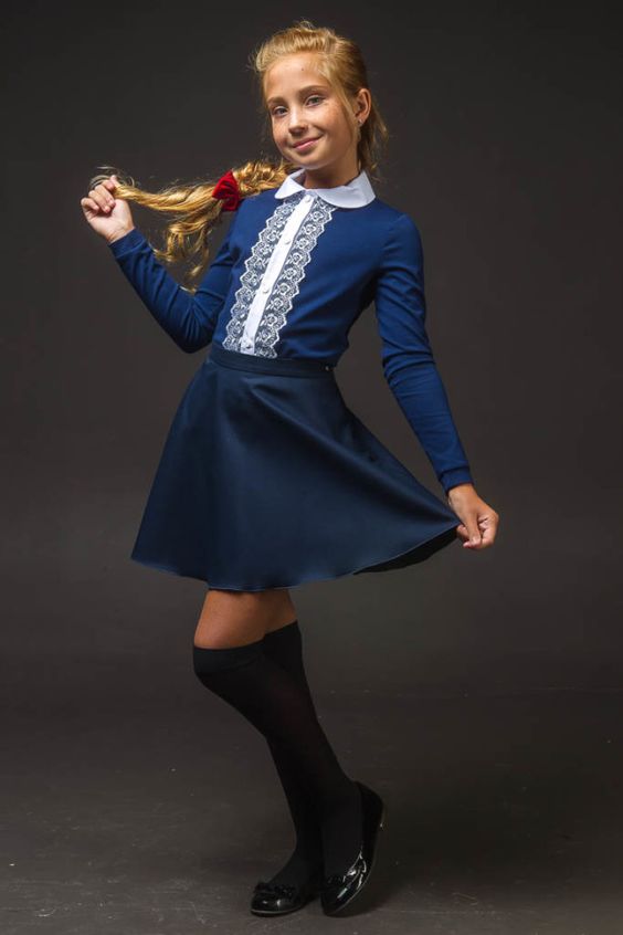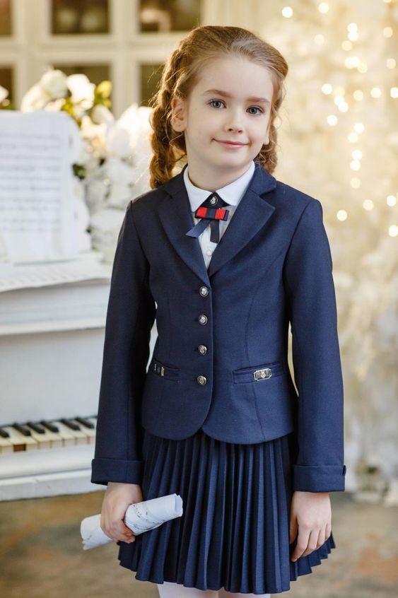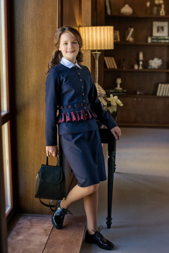 Le plus souvent, les filles de cet âge commencent à s'intéresser à la mode et au style. Mais toujours pour l'école, nous vous recommandons d'acheter un pantalon bleu classique et une veste assortie. Quant à la jupe, vous pouvez choisir presque n'importe quel style. Une excellente solution serait une jupe plissée, qui est à son apogée en 2026. Une jupe trapézoïdale et évasée reste également pertinente. Et bien sûr, on ne peut que mentionner la jupe crayon, qui a l'air un peu plus féminine. L'essentiel est de choisir la longueur du midi ou des genoux.