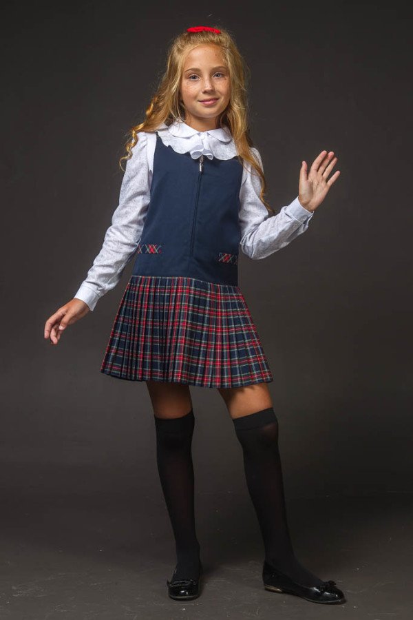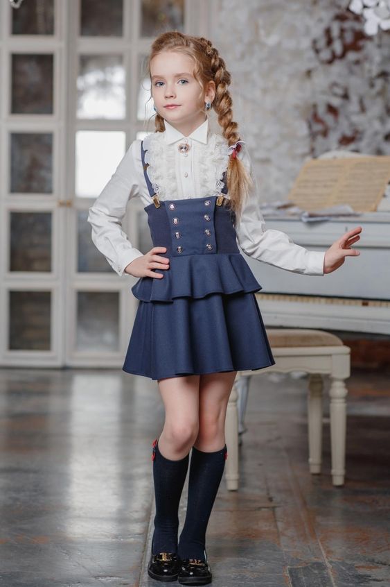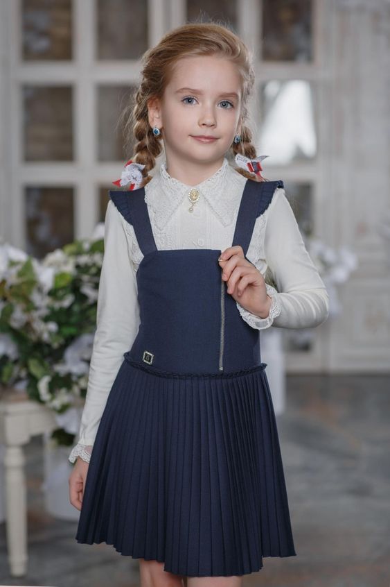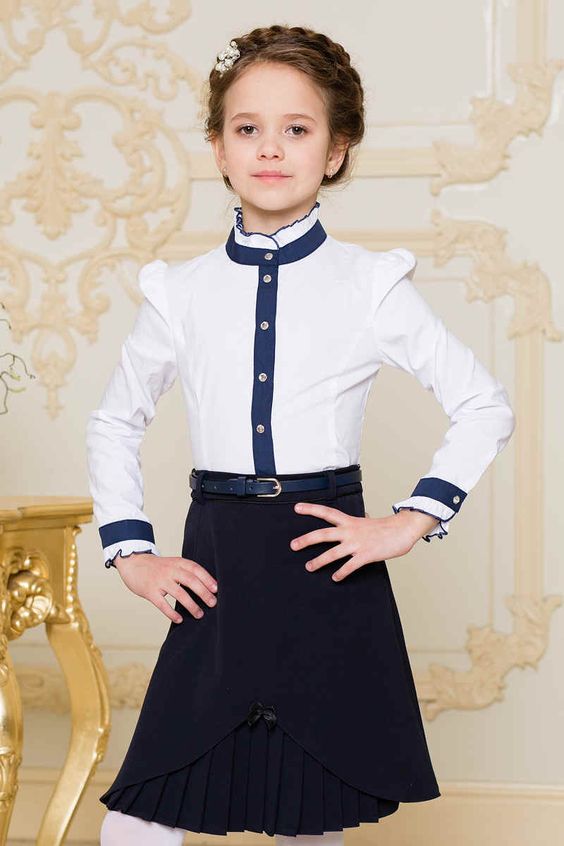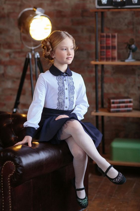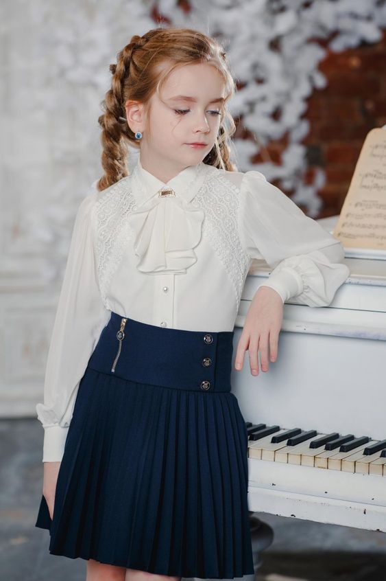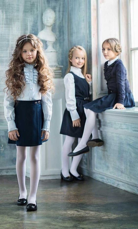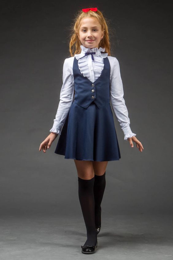 Le plus souvent, les filles de cet âge commencent à s'intéresser à la mode et au style. Mais toujours pour l'école, nous vous recommandons d'acheter un pantalon bleu classique et une veste assortie. Quant à la jupe, vous pouvez choisir presque n'importe quel style. Une excellente solution serait une jupe plissée, qui est à son apogée en 2026. Une jupe trapézoïdale et évasée reste également pertinente. Et bien sûr, on ne peut que mentionner la jupe crayon, qui a l'air un peu plus féminine. L'essentiel est de choisir la longueur du midi ou des genoux.