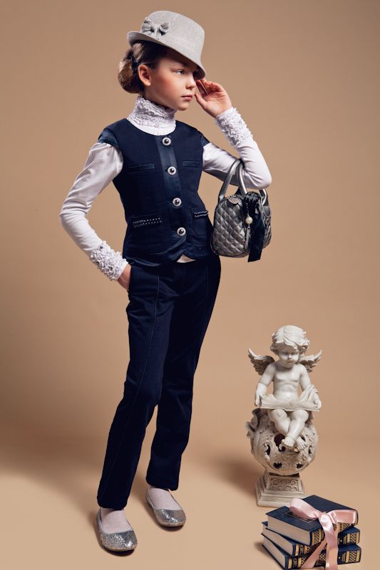 Si vous le souhaitez, vous pouvez compléter l’uniforme scolaire avec des accessoires. Il peut s'agir d'une petite cravate ou d'un noeud papillon associé à un costume de pantalon. C'est très attrayant.