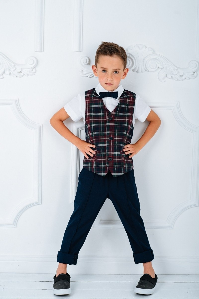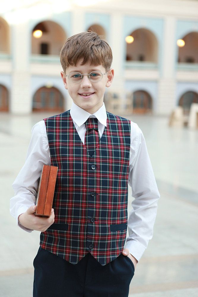 Une chemise est un élément de l'image pour un garçon, ce qui n'est pas inhérent. Cette saison, privilégiez une chemise à manches longues en coton ou en lin. Ce matériau est très léger et confortable et, en combinaison avec des vêtements à carreaux, ce t-shirt aura l’air élégant et élégant pour votre garçon. Vous pouvez choisir une chemise non seulement simple, mais aussi rayée. Une chemise dans le trou de coulée est une priorité pour les hommes adultes. Si vous voulez acheter un haut à carreaux pour votre fils, regardez plutôt le gilet ou la veste à carreaux. La veste peut être choisie pour correspondre au pantalon et obtenir un costume de pantalon à la mode. Le pantalon, comme une chemise, est un élément très important des uniformes scolaires. Le plus souvent, on choisit des pantalons droits classiques afin que votre garçon ressemble à un gars adulte et indépendant. À propos, en 2025-2026, les pantalons raccourcis et rétrécis sont à la mode. Les couleurs des vêtements de l'école ne peuvent pas être vives, mais doivent être en sourdine, par exemple vert foncé, brique ou beige. Le dernier élément de l'image d'un garçon peut être une cravate dans une cage, ce qui ajoutera à son charisme et à sa confiance en soi.