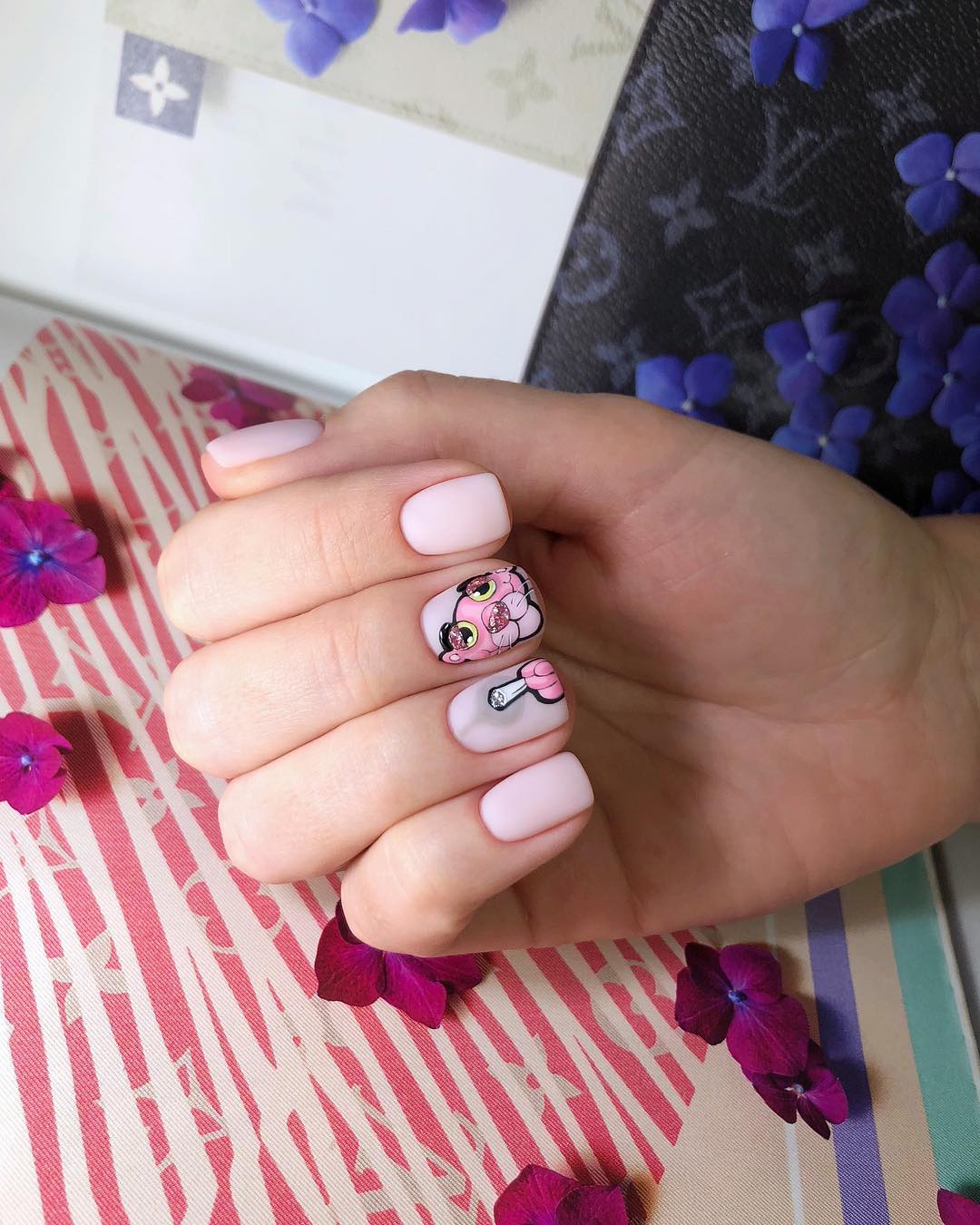 Toute écolière veut avoir l'air parfait. Surtout les filles qui ont atteint 12 ans.C'est la période où les filles commencent à flirter avec les garçons, alors elles essaient de donner à leur image un aspect élégant et en même temps soigné. Pour cet âge, une manucure française légère et décontractée est idéale. Une manucure avec un revêtement nu de la plaque à ongles aura également fière allure, et vous pouvez utiliser l’image de personnages de dessins animés comme décor. Beaucoup de fashionistas de cet âge préfèrent décorer leurs ongles avec un museau de panda noir et blanc.