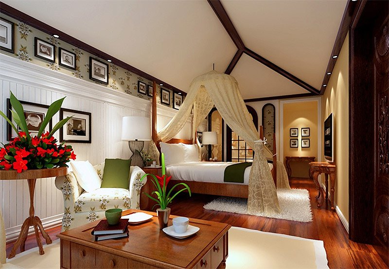 Il n'est pas nécessaire d'utiliser les motifs d'un pays lors de l'enregistrement d'une maison. Dans des traditions complètement différentes, chaque pièce d'un appartement ou d'une maison peut être fabriquée.