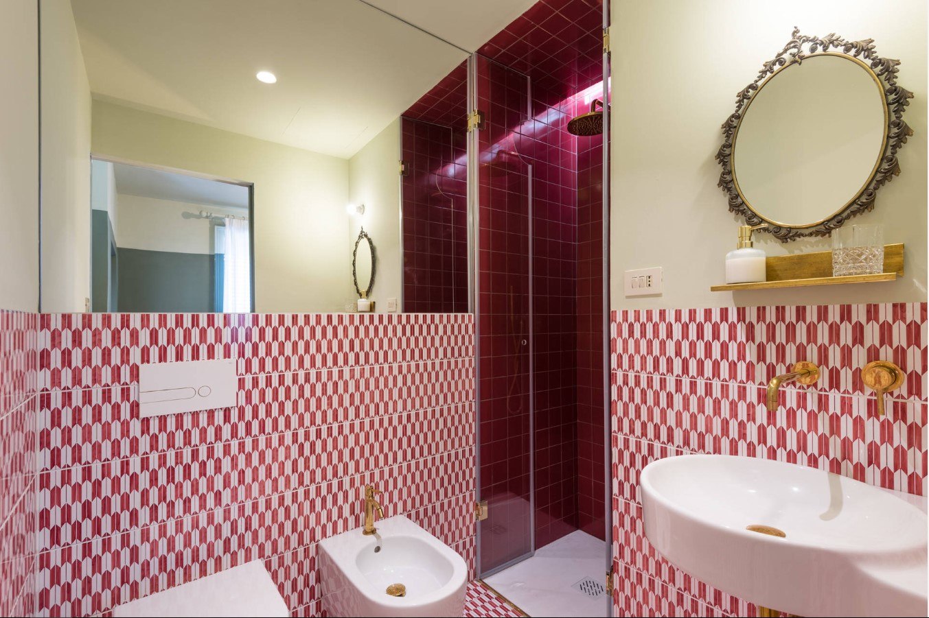 Ce meuble fait main est parfait pour ce petit espace. Les éléments naturels doivent être présents dans la décoration du sol. Les miroirs antiques dans le couloir soulignent le style méditerranéen. Des nuances telles que café, sable, pistache, émeraude donneront à la salle un charme particulier.