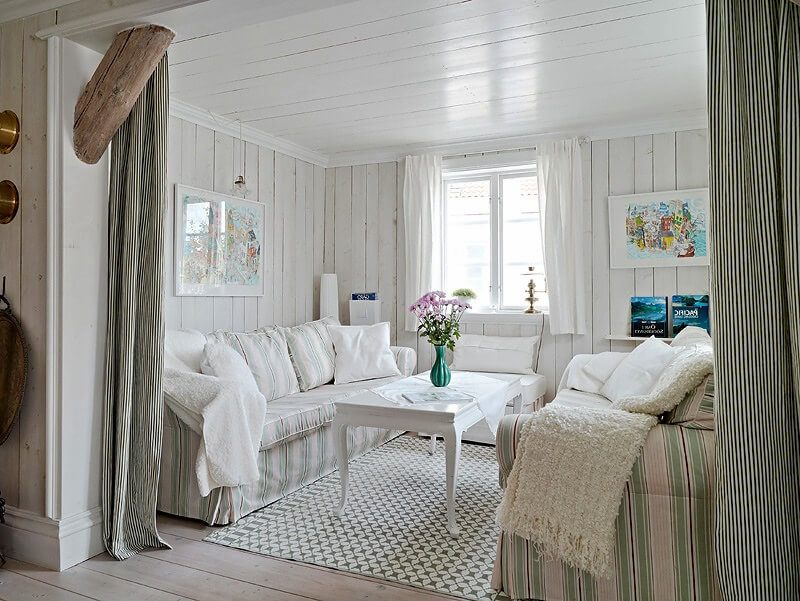 - Utilisez des nuances naturelles calmes. Ici, vous ne verrez pas de couleurs vives et acides. Tout sera brillant et pas accrocheur. Le plus souvent utilisé: blanc, crème, gris, jaune, olive, turquoise pâle, nuances de sable.