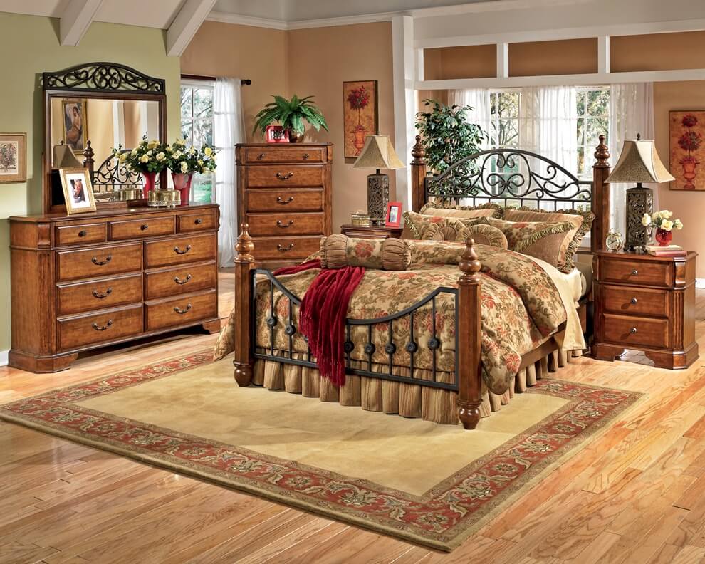 - Matériaux écologiques. Ils sont devenus la base pour la conception des locaux dans ce style. Les meubles sont principalement en bois. Les meubles en cuir ou forgés sont autorisés. Les rideaux, les couvre-lits, les nappes et les oreillers doivent être fabriqués avec des matériaux naturels. Le linoléum, le plastique et les matériaux synthétiques ne sont pas utilisés dans ce style.