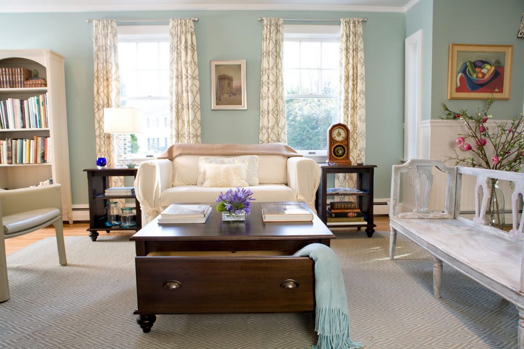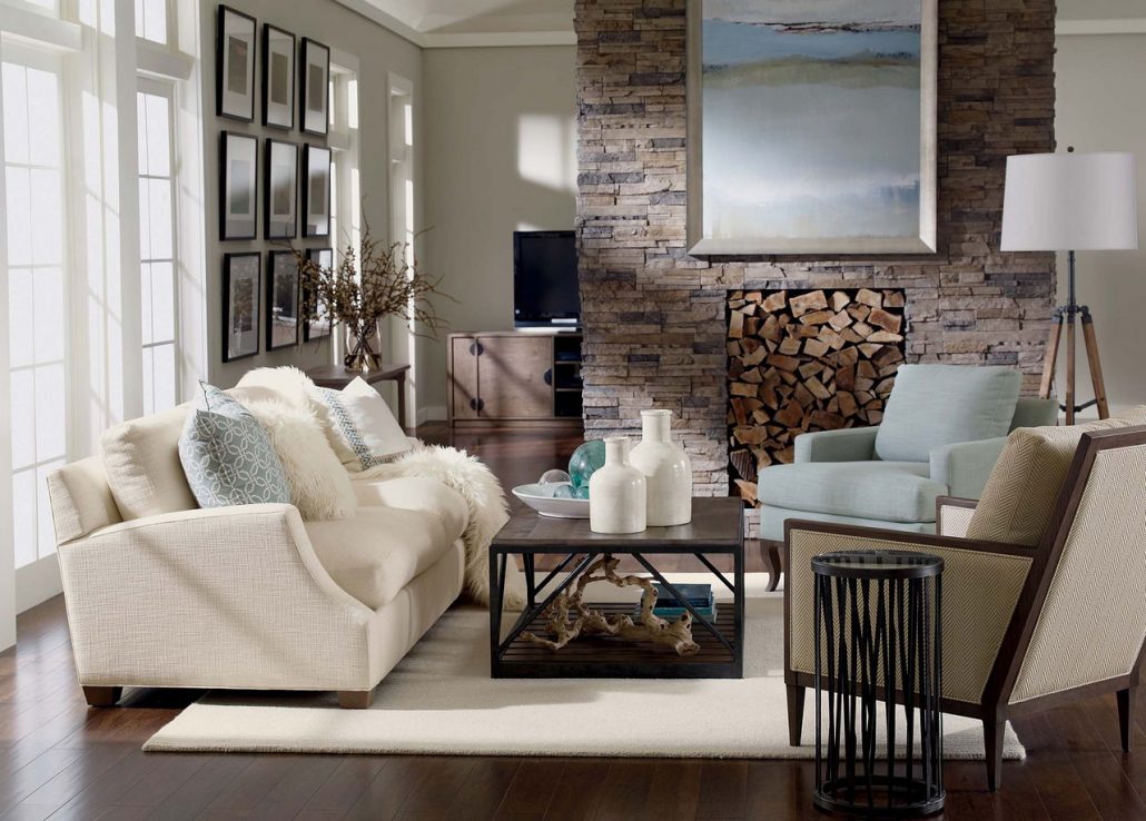 Ils placent généralement dans le salon un canapé, des fauteuils, un mur et une table basse. Ceci suggère qu'ici, en plus de regarder la télévision, ils liront ou feront encore des travaux d'aiguille.