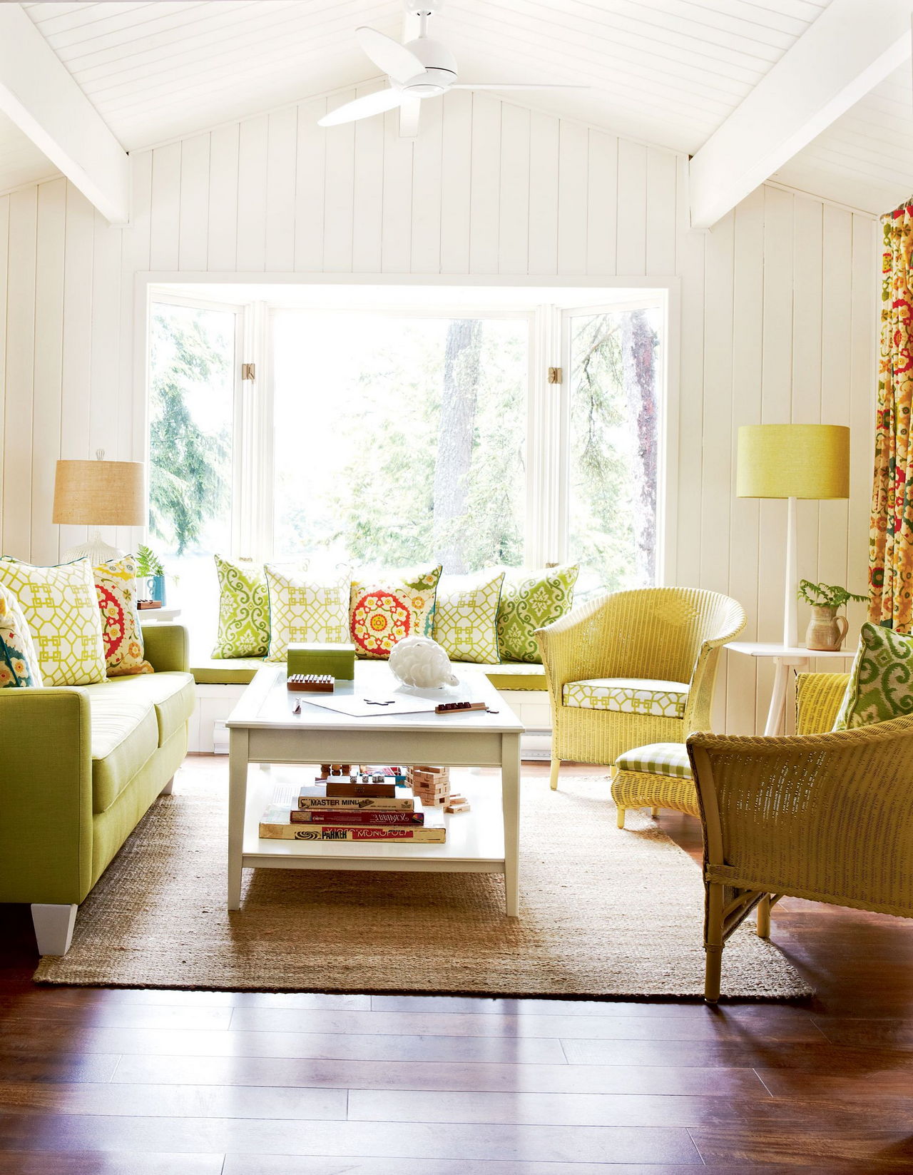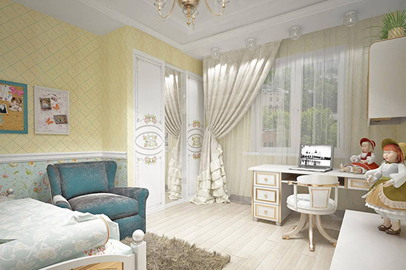 Les fenêtres devraient avoir des rideaux lumineux qui ne gêneraient pas le passage de l'air frais et du soleil. De plus, ils doivent être fabriqués avec des matériaux naturels - lin, coton. Ce qu’ils seront - qu’ils soient simples, à damiers ou avec une petite fleur dépend de l’intérieur général.