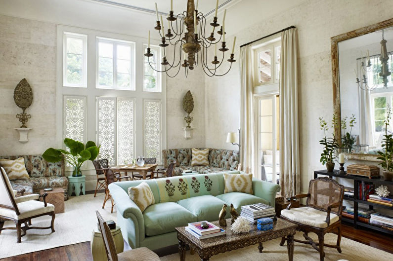 Les amateurs d'art peuvent remplir leur maison avec des peintures dans des cadres élégants. Des candélabres et des lustres fragiles contribuent à créer une atmosphère romantique. La présence de miroirs dans des cadres en bois est importante.