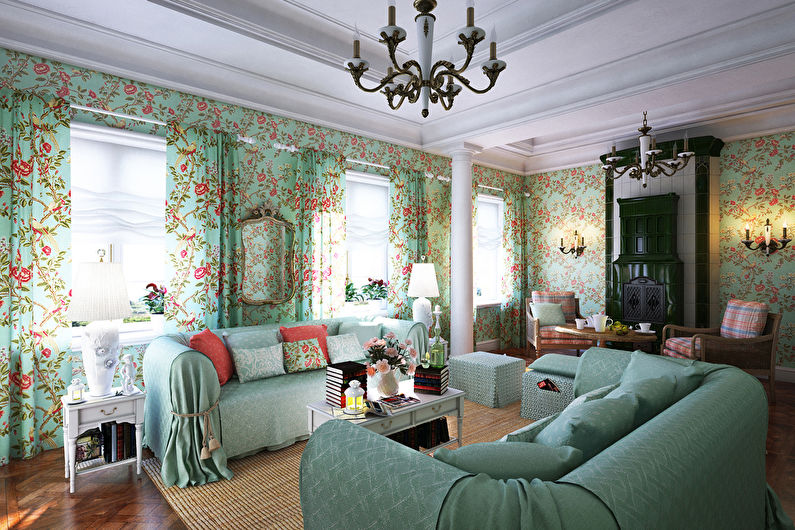 Comme avec le sol, il est permis d’érafler et de légères bosses sur les murs. Vous pouvez même quitter la maçonnerie si elle est soignée. Habituellement, le mur est peint au dessus avec de la peinture blanche ou autre peinture légère. Pour finir, vous pouvez utiliser des moulures, du plâtre et du gypse. Si vous préférez le papier peint, alors ils devraient certainement avoir un ornement floral.