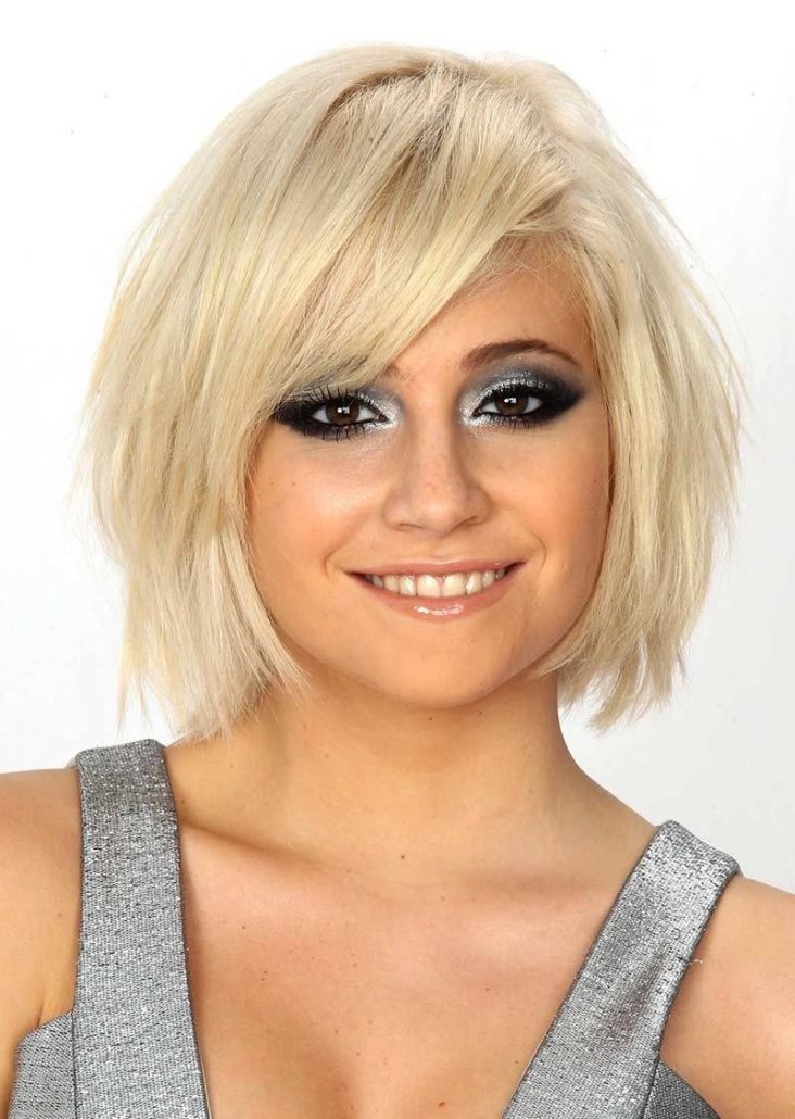 Un coup oblique est idéal pour les filles avec un visage rond. Cette option sera également un salut pour ceux dont les cheveux sont bouclés et difficiles à coiffer. Du fait que la coupe asymétrique ne nécessite pas de style constant, cela vous fera gagner du temps.