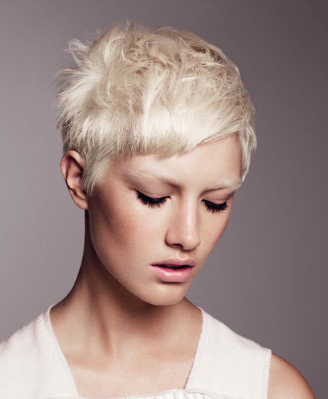 Cette version de la coupe de cheveux implique des mèches blanchies et des cheveux coupés sur les côtés, ainsi que sur le dos de la tête. Dans ce cas, il est très important que les contours de la coiffure soient aussi clairs et uniformes que possible. Grâce à cela, la coupe de cheveux adhère doucement à la tête et l’image aura immédiatement un aspect élégant et féminin.
