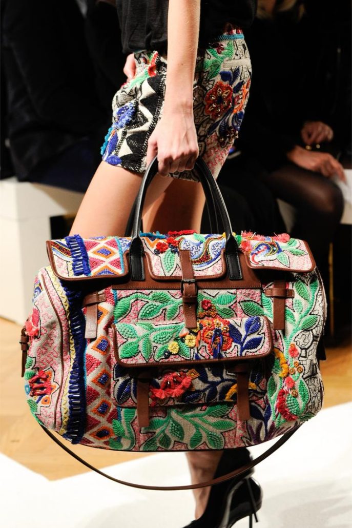 Le style boho est apparu solennellement sur les podiums sous la forme de sacs à main vintage originaux décorés avec des pierres, de la dentelle, des inserts à motifs, des broderies et des noeuds.