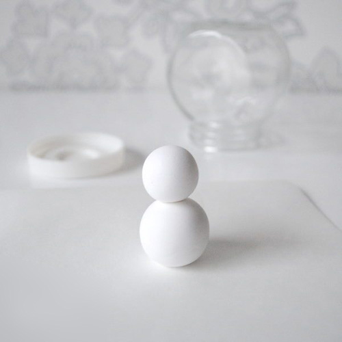La pâte polymère est nécessaire pour sculpter les personnages. Si vous le souhaitez, un chiffre fini similaire peut être acheté au magasin. Une maison de conte de fées, un arbre de Noël, des personnages de contes de fées, etc., feront l'affaire. Dans notre exemple, ce sera un bonhomme de neige, que nous fabriquerons nous-mêmes. Pour ce faire, à partir d'un morceau d'argile, vous devez rouler de petites balles pour le tronc et les bras.